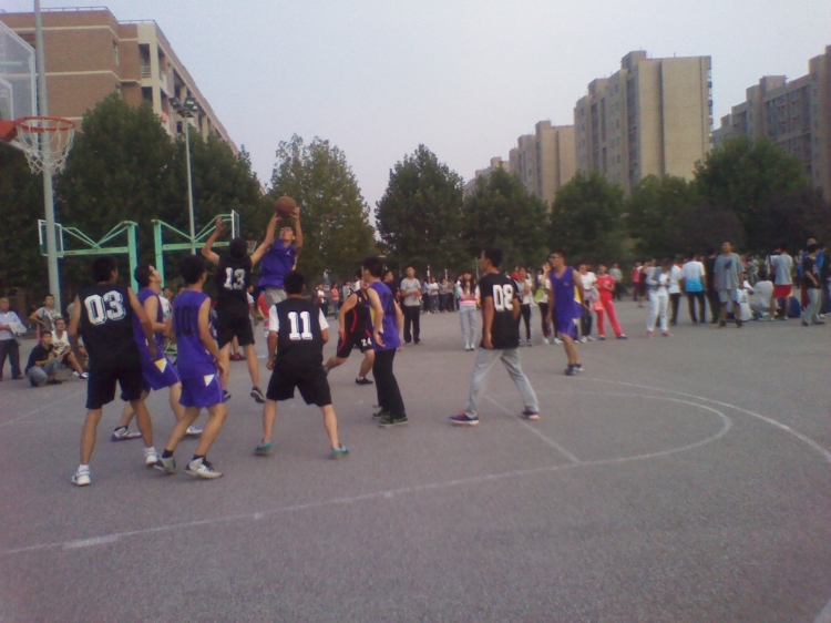 2014级“迎新杯”篮球赛在南操场举行,电子科学与技术一班与电子信息科学与技术二班共14名男生与3名女生参加了此次比赛。