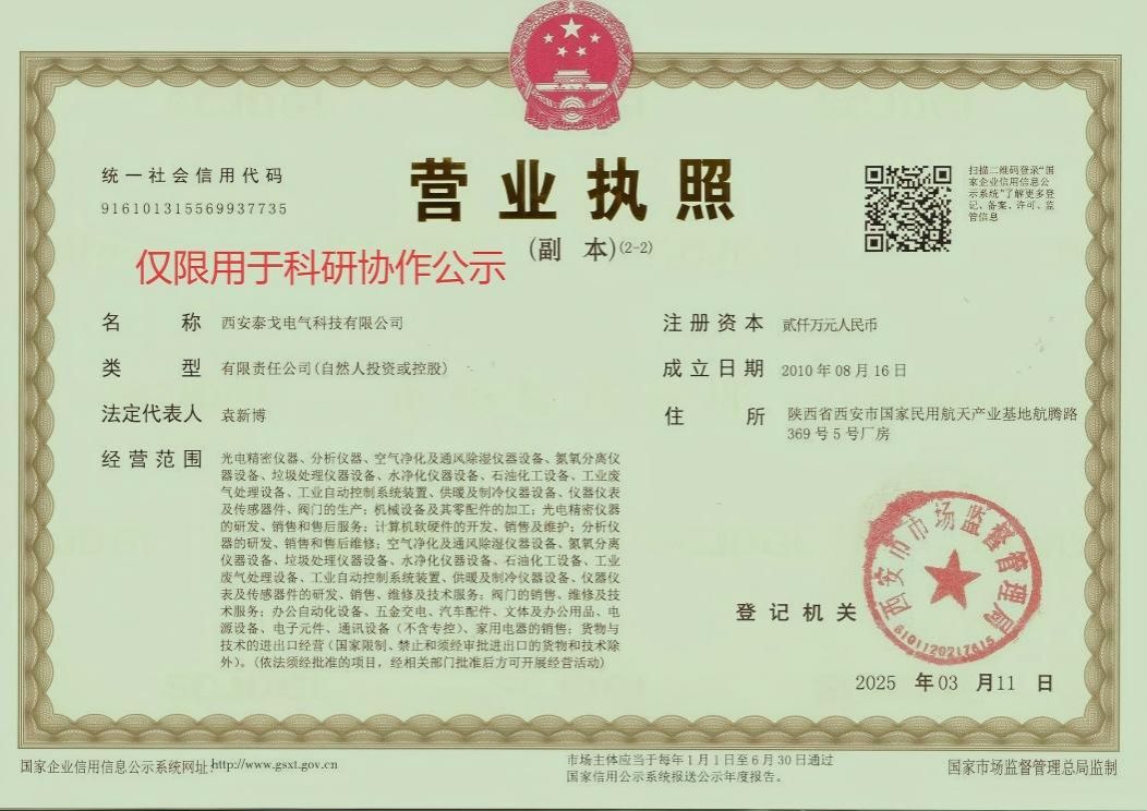 科研协作项目管理办法(试行)》文件规定,为加强学校科研协作项目的管理,确保国产化微量水分析装置的顺利进行。西安泰戈电气科技有限公司与项目负责人陈柏松将开展科研合作,现将合作相关事项公示如下: