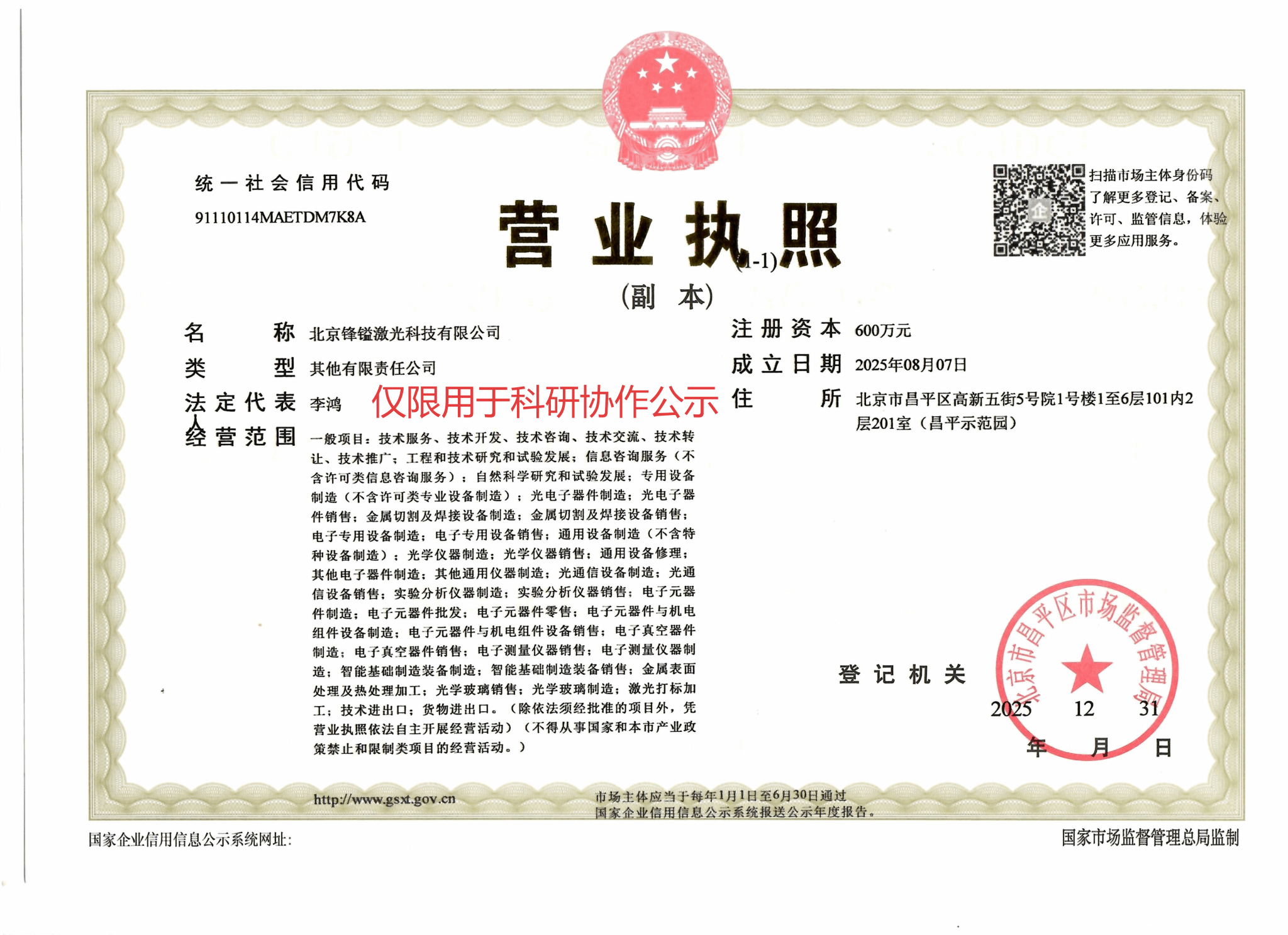 科研协作项目管理办法(试行)》文件规定,为加强学校科研协作项目的管理,确保多路输出大能量飞秒激光系统工程研发的顺利进行。北京锋镒激光科技有限公司与项目负责人于洋将开展科研合作,现将合作相关事项公示如下: